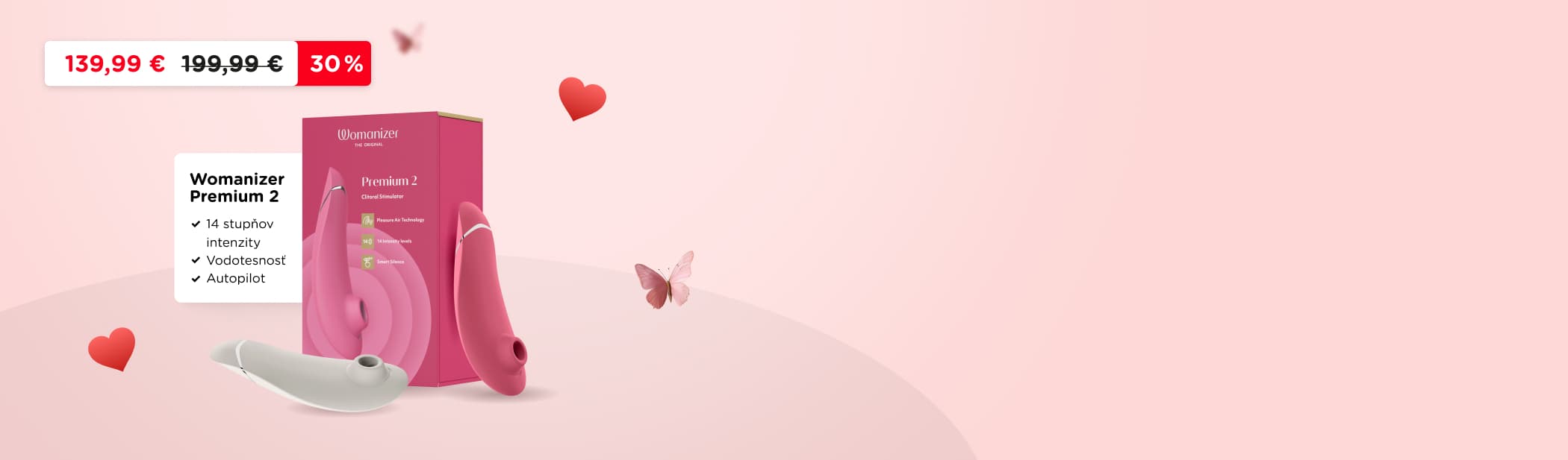 Za minútu na vrchole! Produkt týždňa: Womanizer Premium 2 so zľavou 30 %. Tento stimulátor klitorisu prináša intenzívne orgazmy vo veľmi krátkom čase, výnimkou nie sú ani niekoľkonásobné orgazmy. Je to láska na prvý dotyk!