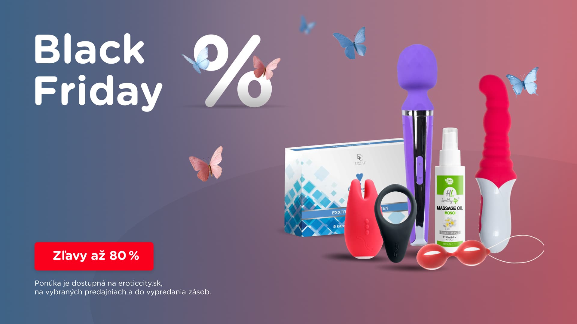 Na špeciálnej Black Friday stránke nájdete prehľadnú ponuku z viac ako 20 produktových kategórií – od vibrátorov cez bielizeň až po párové pomôcky.
